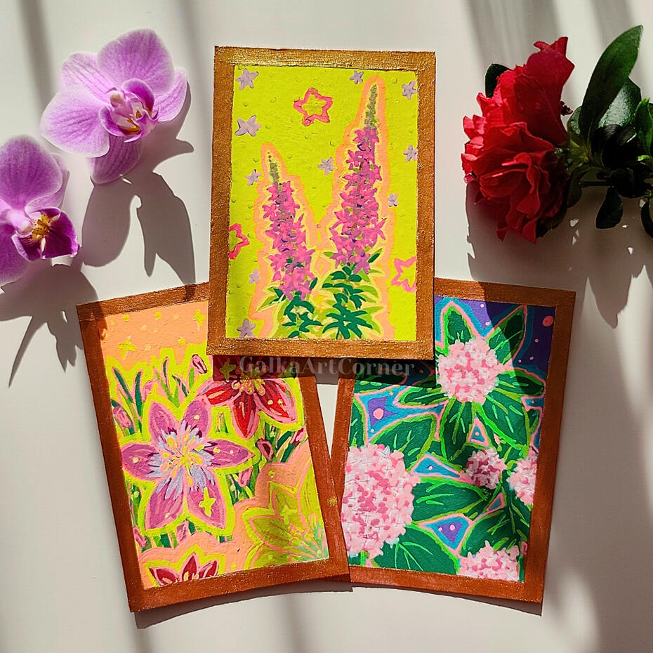 What is ACEO? It stands for Art Cards, Editions and Originals, which basically means you can collect handmade cards from different artists all over the world! These are always made in the same size so you can for example store them all in an album, like Pokemon cards :) Right now I'm making an ACEO series of underrated flowers but I can create any design just for you!